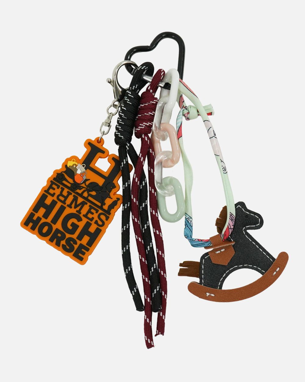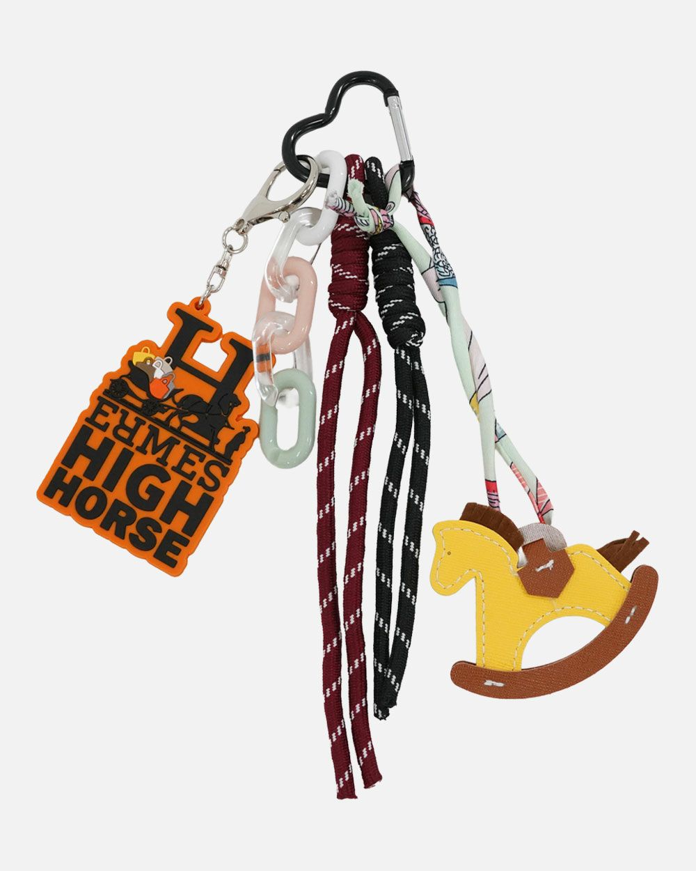 ロッキングホースとロゴパーツを重ねたユニークなチャーム。