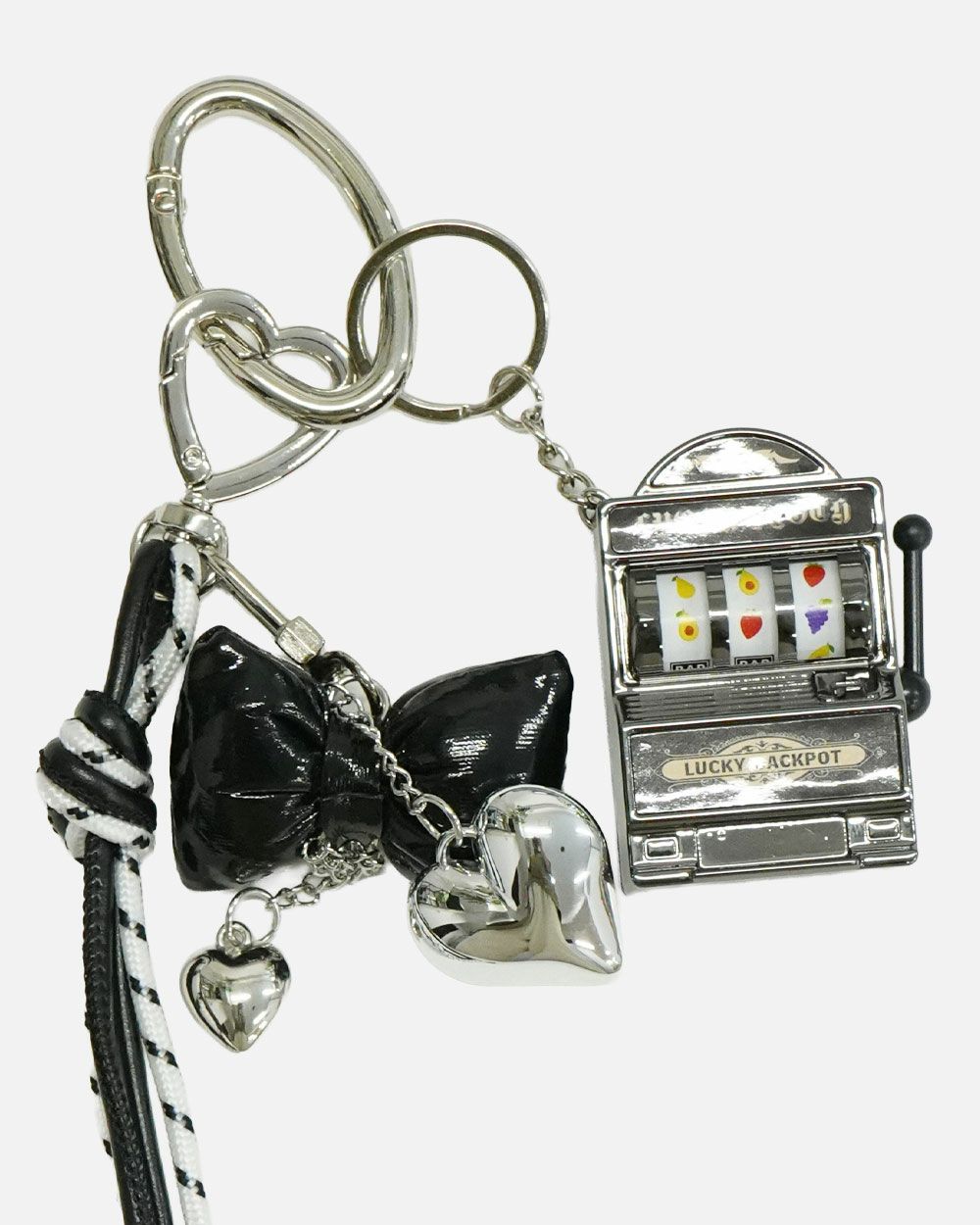 ・デザイン:スロットマシーン型チャーム+リボン+ハート+ロープ状ストラップ