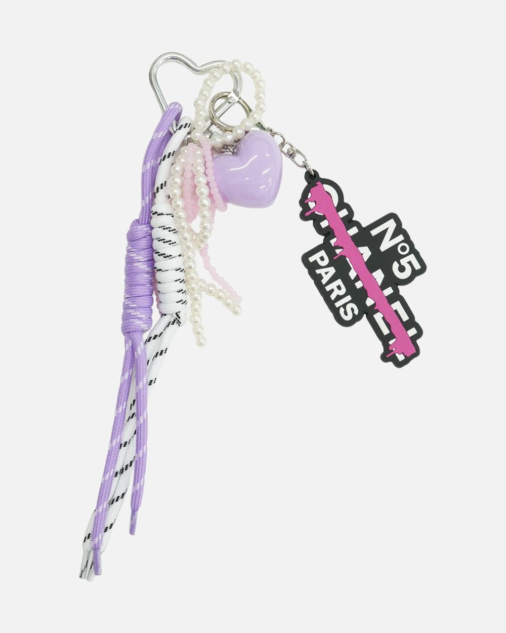 ハートカラビナとスニーカー紐の組み合わせで程よい甘さに。