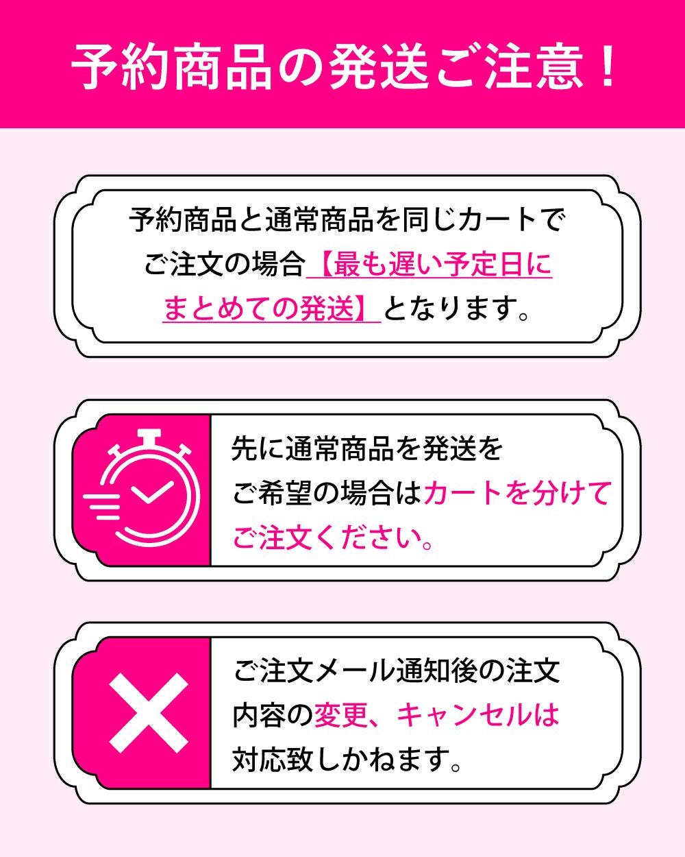 ▼予約商品と通常商品を同じカートでご注文の場合【最も遅い予定日にまとめての発送】となります。